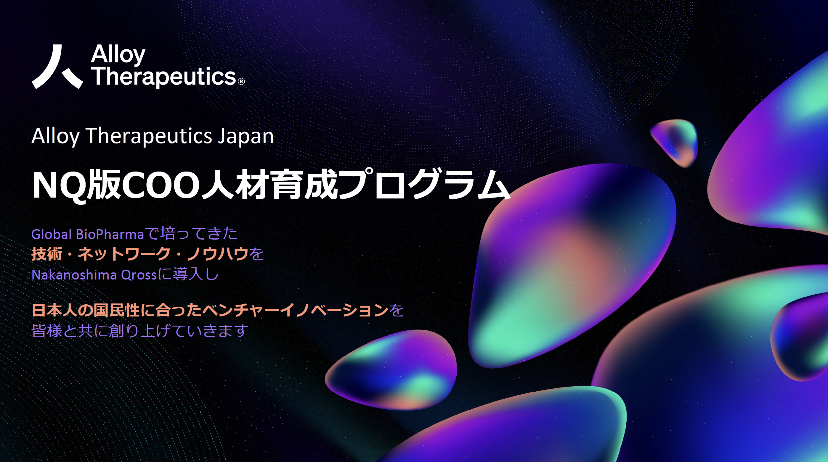 Alloy Therapeuticsの82VS Venture Studiosが米国SU 向けに実施している「COO(最高執行責任者)人材育成プログラム」をもとにした「Nakanoshima Qross版COO人材育成プログラム」として実施する国内スタートアップ向けの人材育成プログラムです。